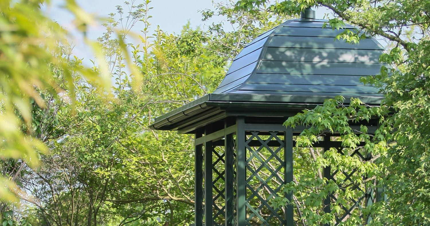 „Als hätte er immer schon dort stehen sollen“, das haben wir alle gedacht, als unser neuer Gartenpavillon fertig aufgebaut war. Als ein weiteres gärtnerisches Gestaltungselement fügt er sich sehr harmonisch auf dem Rhododendronhügel und in die Umgebung ein.