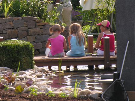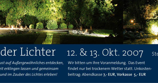 Auch der Wesser-Garten, aus einem älteren Gartenteil mit stattlichem Gehölz und einem neuen Schaugarten bestehend, feierte Prämiere. In lockerer Atmosphäre nutzen viele Gäste die Gelegenheit zum Fachsimpeln oder fanden Anregungen für die Gestaltung der eigenen Gärten. Am Samstag um 22 Uhr erlebten wir gemeinsam mit unseren Gästen die große Wasseranlage bei Nacht, stimmungsvoll erleuchtet und märchenhaft anmutend im mit Lichtpunkten versehen Garten.