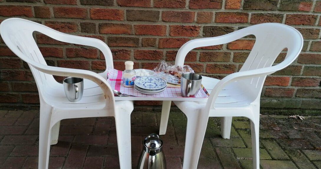 Und weil sie sich immer freut, wenn die Gärtner kommen, gibt es zum „Tässchen Kaffee“ selbstgebackenem Apfel-Streusel-Kuchen- natürlich mit Sahne! Ein Gedicht 🙂